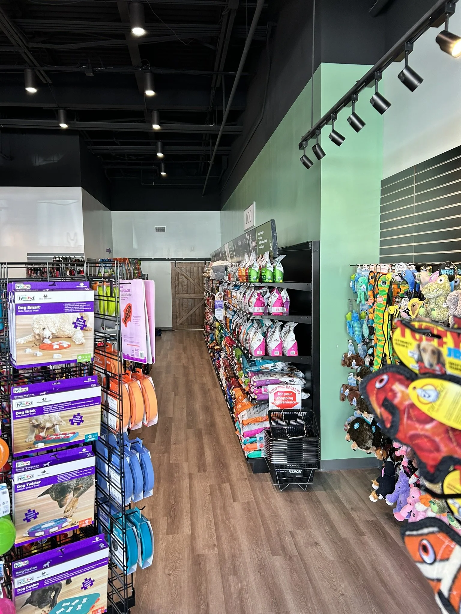 Earthwise Pet is a West Coast franchise that has come east! Flock had fun transforming an empty storefront into a fun place for dogs and cats to get a sweet treat or some TLC in the grooming space. The scope consisted of a complete fit-out including HVAC, washer and dryer, pet grooming sinks, plumbing, electrical, framing and drywall, ceilings, fire protection, fire alarm, paint, flooring, custom millwork, and signage. Performed in Wayland, MA in the spring of 2023 in 4 months.
